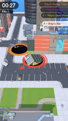 2、游戏以两分钟为一局,在有限的时间内玩家要控制一个像下水道口一样的黑洞在城市里到处移动。