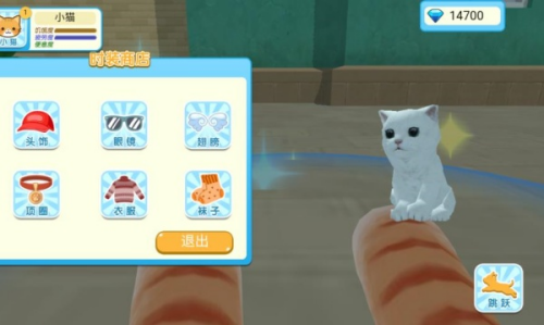 2、 进入服装商店,为猫猫进行装扮,给它选最好看的衣服和装饰品,打造最靓的猫猫萌宠。