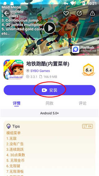 3、小编这里以地铁跑酷为例,在此界面中直接点击安装即可下载游戏