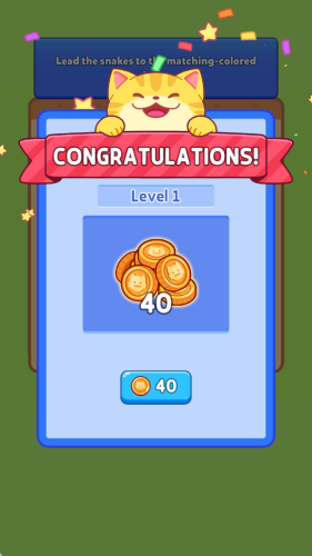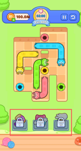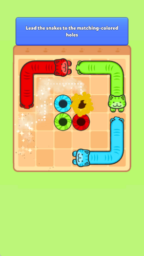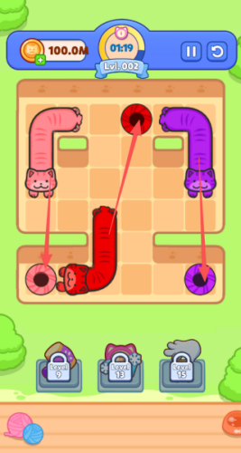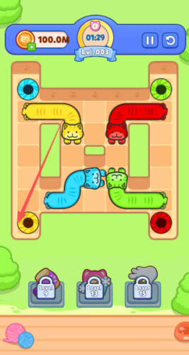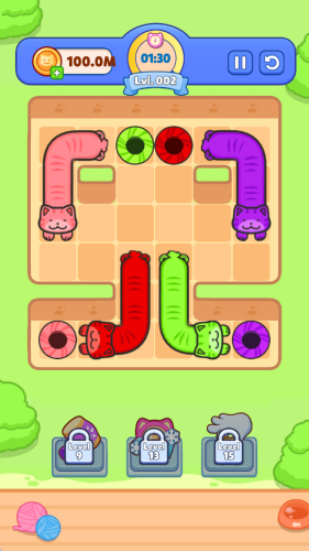 2、色彩缤纷的可爱猫咪:在每个关卡中操控不同颜色和长度的猫咪。