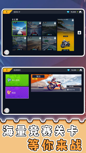 5、玩法兼顾休闲与竞技,操作不复杂,新手老手都能快速融入赛道,享受摩托车对决的快乐,十分不错。