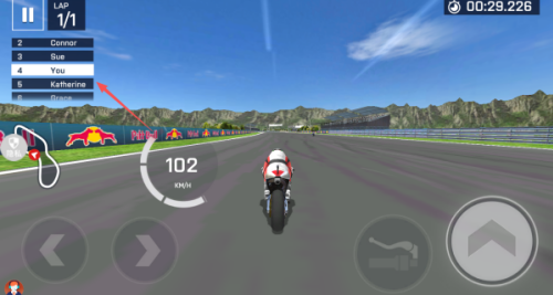 2、进入到赛道中之后,我们可以通过左侧的左右的按钮控制方向,右侧则是加速的按钮哦。