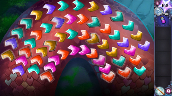 6、紧接着点击洞穴爬行者就会出现一个小游戏,将所有的鳞片按照正确图案进行摆放。