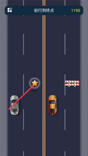 2、通过左右滑动或倾斜设备控制车辆移动,主动收集散落在道路上的星星以提升得分与资源获取。