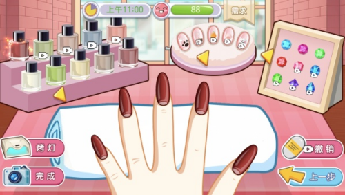 7、每天都会遇到不同的顾客进店来进行美甲制作,每个款式都是不相同的玩家,在这里可以自由的进行发挥,达到顾客的满意。