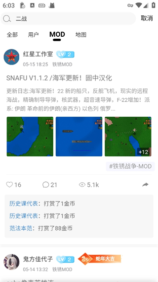 2、在结果中选择mod栏,点击你想要的进入。
