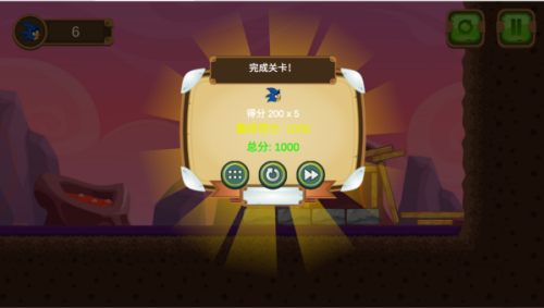 3、完成关卡任务就可以显示得到的分数并获得奖励,然后点击进入下一关。