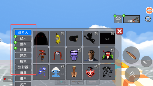 1、首先我们可以选择创建的按钮,去创建各种的单位,比如敌人或者是盟友。
