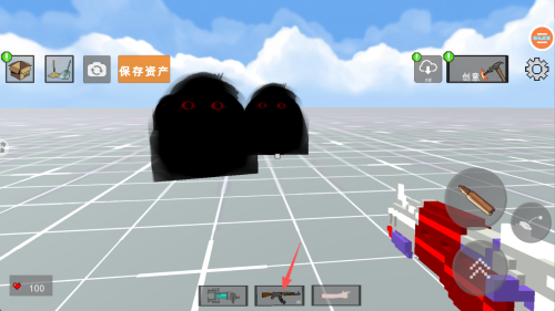 3、如果我们创建了敌人,那么我们需要点击下面的射击的武器,去将敌人清理掉的。