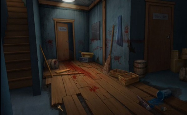 输入到柜子中的密码锁处,收集柜子内的串通证据,报纸,以及一个袋子,调查袋子得到钥匙(然后袋子不消失,很不智能)。