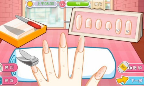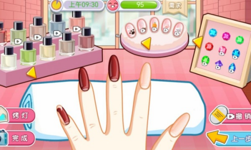 6、在限定时间内完成所有美甲工序,系统根据色彩搭配、装饰复杂度、工序完成度等维度给予评分反馈。
