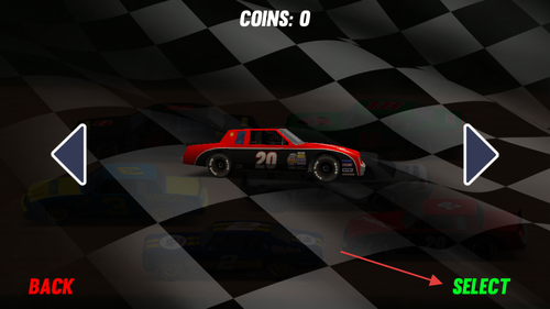 1、在选车界面挑选自己中意的赛车,确认后点击绿色SELECT按钮即可进入正式比赛准备阶段。
