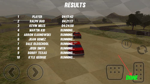4、比赛结束后系统会显示最终排名结果,点击绿色DONE按钮即可无缝衔接下一场比赛继续挑战。