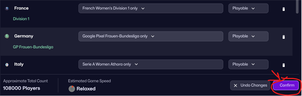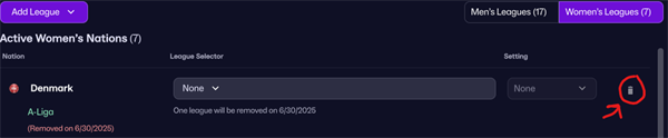 第 2 步:添加您想要的所有国家后,单击右上角的这些按钮导航到要删除的联赛的性别。