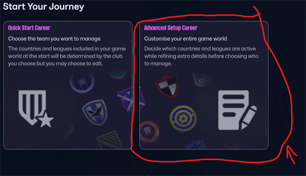第 1 步:为了选择您想要的联赛性别,您必须通过访问高级设置职业来开始您的职业生涯。