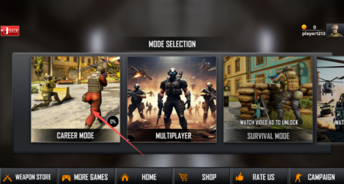 1、首先我们可以选择不同的模式,可以按照自己的喜好,以及射击战斗的水平进行选择的。