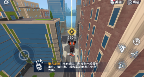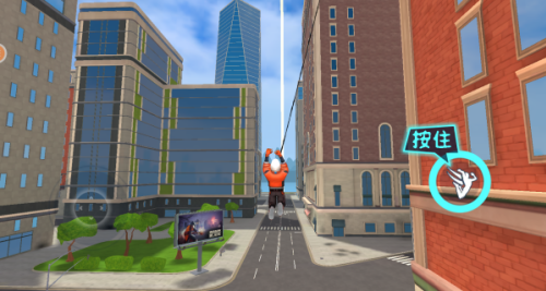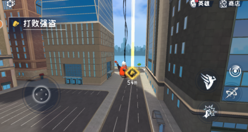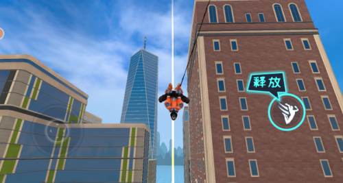 2、当你点击释放按钮之后,蜘蛛英雄就可以快速的飞檐走壁,很快去到另一个地方。