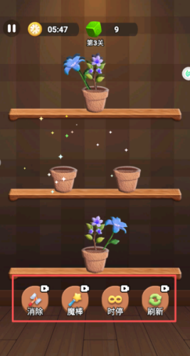部分花盆出现冰封,通过消除撞击的方式破解冰封。