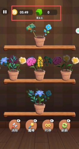 3、关卡围绕花艺主题设计,有春日花园温馨花房等场景,随着关卡推进消除难度和可解锁的花材种类会逐步增加。