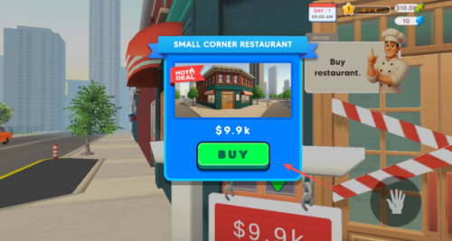 1、首先我们需要购买一个餐厅,直接去点击这个餐厅,然后就可以花钱买下它了。