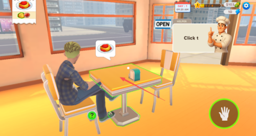 4、休闲的模拟经营小游戏,模拟真实的经营体验,体验制作食物的过程,接待不同的客人,轻松赚零花。