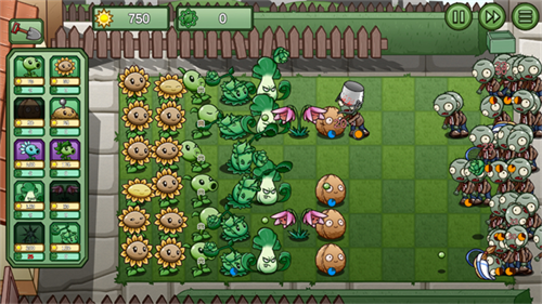 6、阻击不断前来的僵尸大军,每个植物的能力都很神奇,抵御僵尸的突进。