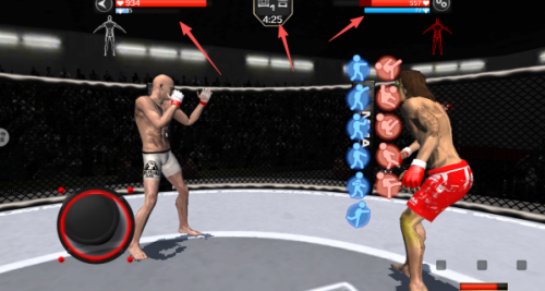 拳击手的体力、耐力随动作消耗变化,越频繁攻击或被击中,状态越差,玩家需合理分配体能才能取胜。