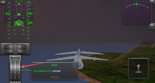 2、比如我们可以学习如果起飞,点击左侧的按钮,将油门数据设置为系统要求的数值。