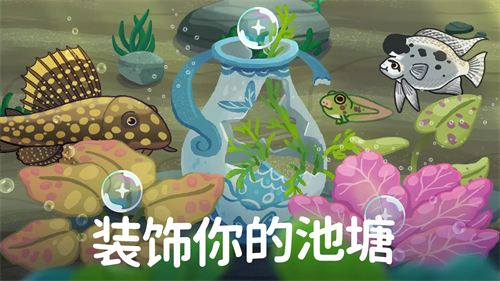 3、打造梦幻池塘,收集各种美丽的水下植物与装饰,让你的池塘焕然一新,成为充满生机的壮观淡水乐园。