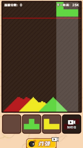 5、在方块落下之前,提前思考其摆放位置,避免堆积过高导致闯关失败。