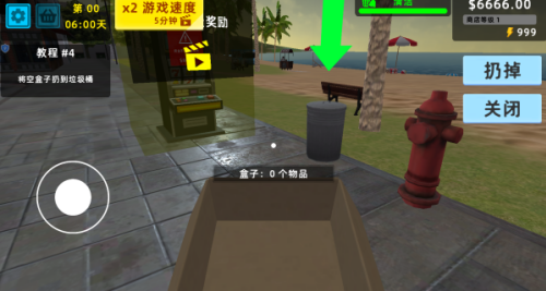 3、摆放好物品之后,你就要将箱子丢在垃圾桶里,去到指定的地方扔箱子。