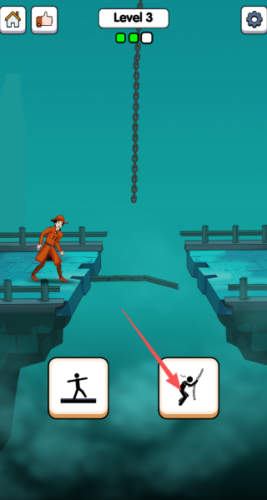 3、这里应该选择跳起来拉上铁索过去,还是比较简单的,只需要做出正确选择即可。