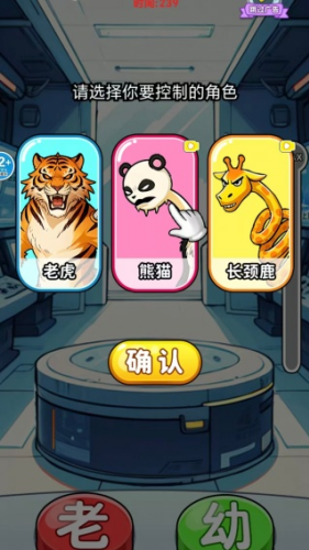 4、进入疯狂动物变老幼,在下图中任意选择一个动物作为你控制的角色,点击确认按钮开始进行游戏。