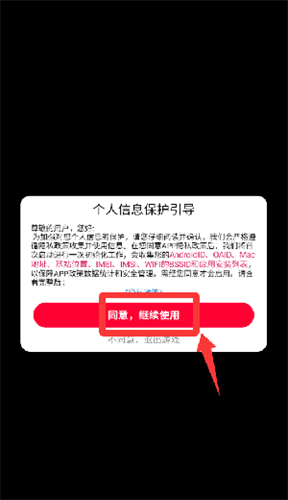 1、点击个人信息保护引导里的同意并继续。