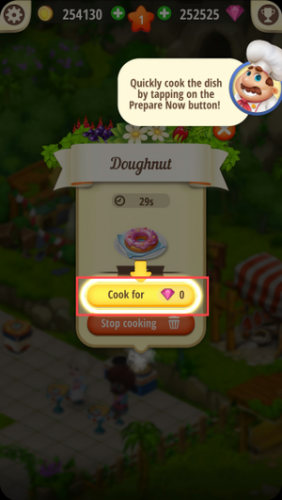 2、制作甜甜圈时若出现快速提示,点击粉钻按钮就能免费加速,无需消耗钻石完成烹饪。