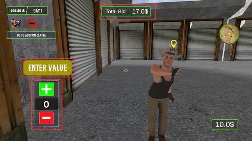 2、靠近戴牛仔帽的角色后,点击STARTBIDDING按钮,正式进入仓库竞拍流程。