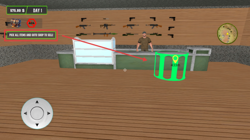 1、滑动左下角摇杆控制角色移动,根据左上角提示前往AuctionGarage参与拍卖活动。