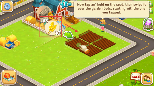 2、长按小麦种子拖到耕地完成播种,绿油油的麦苗会慢慢生长,等待成熟即可收割。