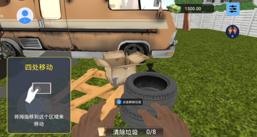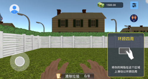 1、进入游戏后,你可以根据指示去环顾四周,完成清除垃圾的任务。