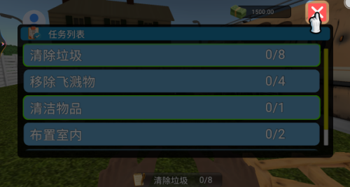 3、你今天的任务有很多,首先清除垃圾,其次是移除飞溅物、清洁物品和布置室内。