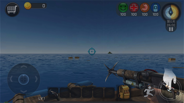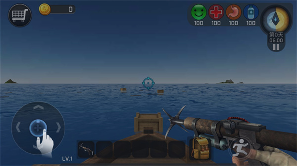 2、海上有各种资源,对准目标,长按右侧射击按钮,将物品拉回来。