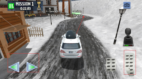 2、任务中使用左右箭头控制方向,右侧操作杆和踏板调节车速,按指引稳步前行。