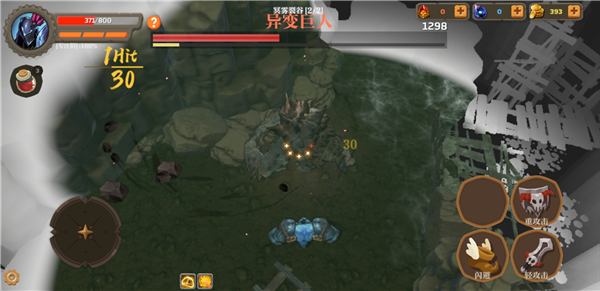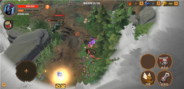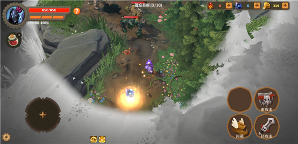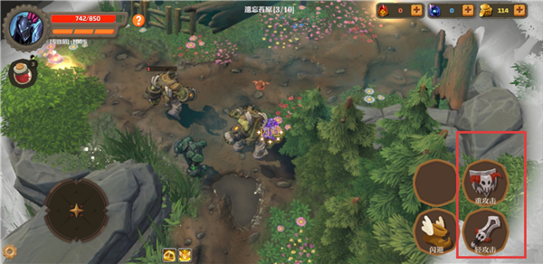 1、进入失乡骑士游戏中,左侧遥感控制行动,右侧进行攻击、闪避等。