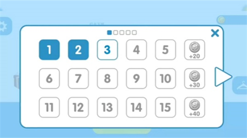 2、游戏提供多达75个关卡,关卡除了设计外还有分数、打卡、不打卡等设定,完成指定关卡后还可以获得海量金币奖励。