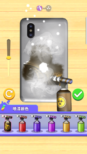 1、游戏模拟手机壳制作的完整步骤,包括涂抹胶水、喷漆上色、风干、贴纸等操作,让玩家体验手工制作的乐趣。