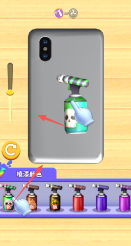 1、首先我们需要从下方去选择各种不同的喷漆,然后对着手机壳进行喷涂。