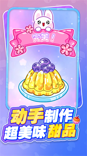 3、采用清新治愈的卡通画风,食物细节刻画精致,如晶莹剔透的果冻山,带来视觉上的极致享受。