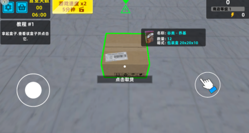 2、利用虚拟摇杆操控着角色慢慢的移动到盒子的前面,点击手指,拿起盒子。