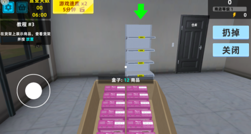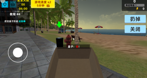 4、摆放好了商品之后,盒子空了,你要将空盒子扔进垃圾桶中,点击扔掉。
