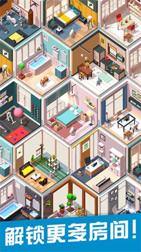 1、主要以装修小屋为主,包含卧室、办公室、健身房等多种场所,凭借游戏所获得金币来用于家居装修的经费,多种不同风格家具自主选择搭配,与众不同的家居装饰,赋予游戏更多的乐趣和可玩性。